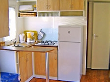 Grote, moderne, extra-ruime 3 kamers mobile home in chalet stil. Met 3 dubbele slaapkamers, afzonder lijk toilet en badkamer. TV. Volledig ingerichtekeuken met ijskast med vriesvak en een microgolfoven. Nieuw houten terras opeen zonnige plaats dicht bij het strand. Maximum 6 personen